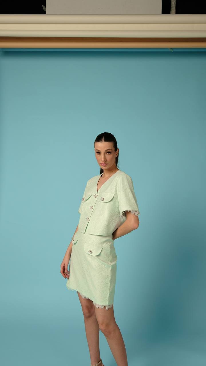 The Chérie Lace Twin Set radiates classic elegance with a modern pastel twist. Whether you’re drawn to the serene mint or romantic lilac, this look is made to turn heads while keeping things refined and graceful.