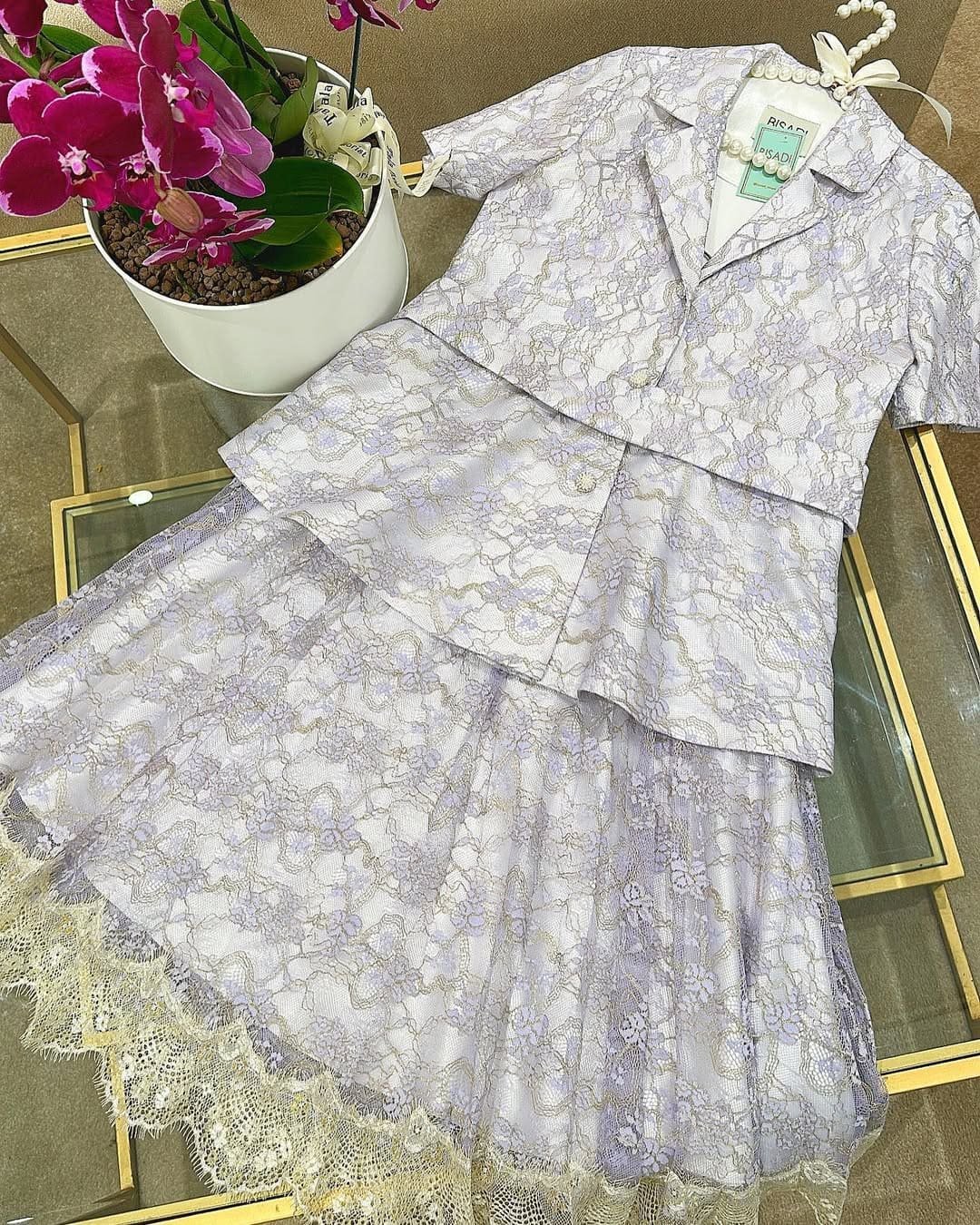 The Lavender Lace Harmony Set is a celebration of gentle elegance. With its floral lace texture and graceful drape, it’s perfect for bridal showers, daytime events, or soft formal occasions. The tailored blouse pairs beautifully with the high-volume skirt, offering versatility and refinement in every wear.